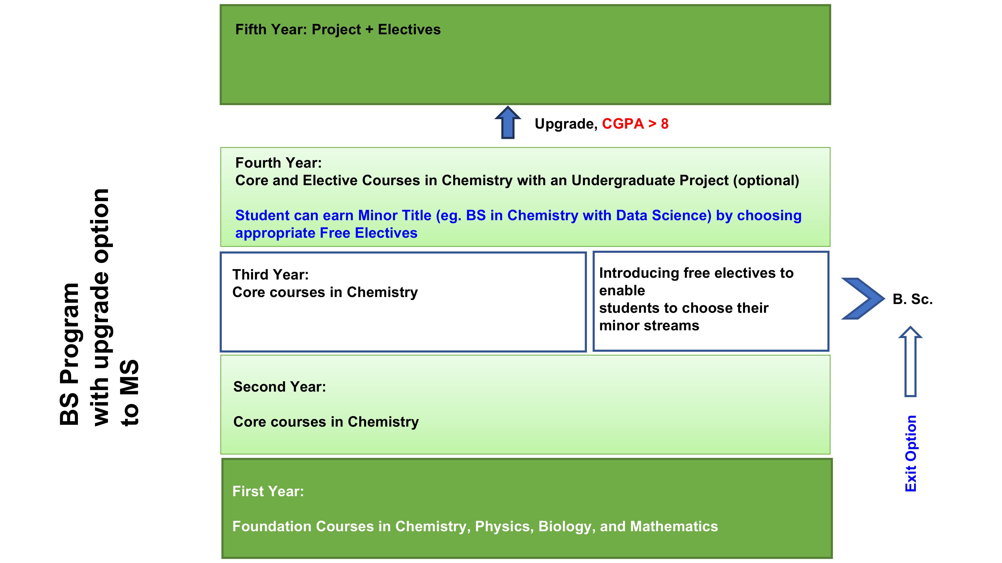 The BS program is designed to provide students with a solid foundation in Chemistry and allied Science subjects, blending theoretical knowledge with practical laboratory experience to prepare them for careers in research, industry, and academia. Also, the curriculum offers a large number of choice based learning opportunities ensuring an enjoyable learning experience at IIT Madras Campus.